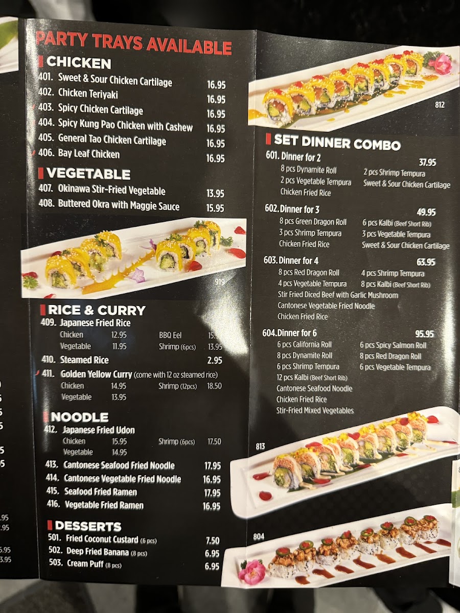 The menu at Ichiban Asian All You Can Eat in Markham offers a diverse selection centered on sushi and Asian fusion dishes presented in a buffet format. Guests can expect a variety of sushi options including sashimi, torched sushi, and sushi combos, alongside other Japanese staples such as shrimp tempura, salmon teriyaki, and grilled items like BBQ mackerel and beef ribs (牛仔骨).